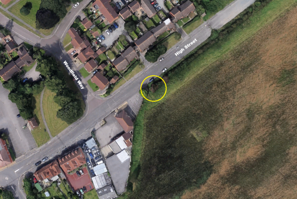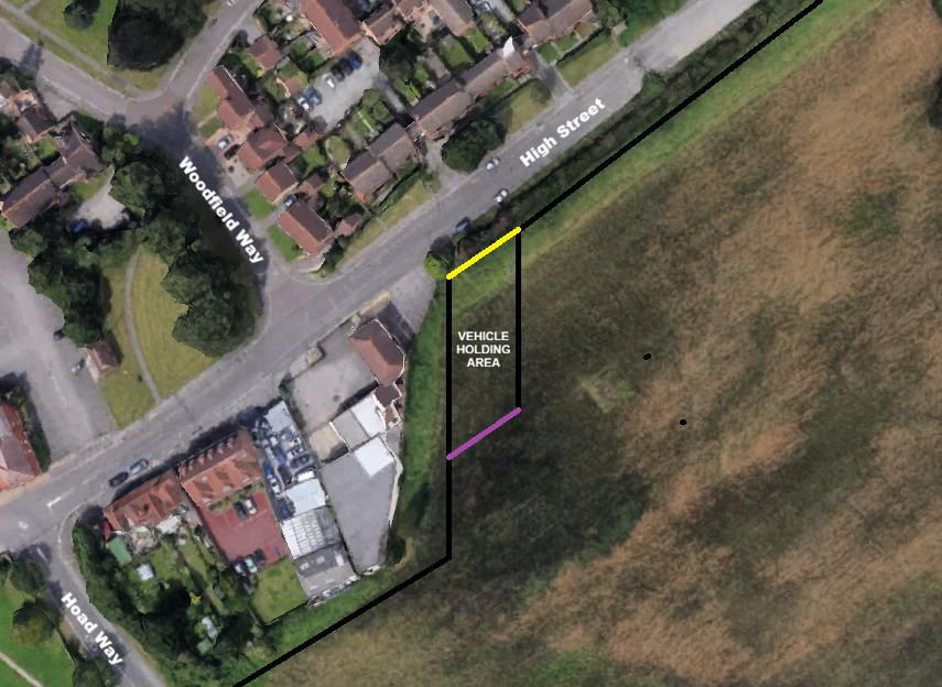 An access to the site already exists on the High Street a short distance east of the junction with Woodfield Way, immediately adjacent to a parking area next to R&M Lighting.