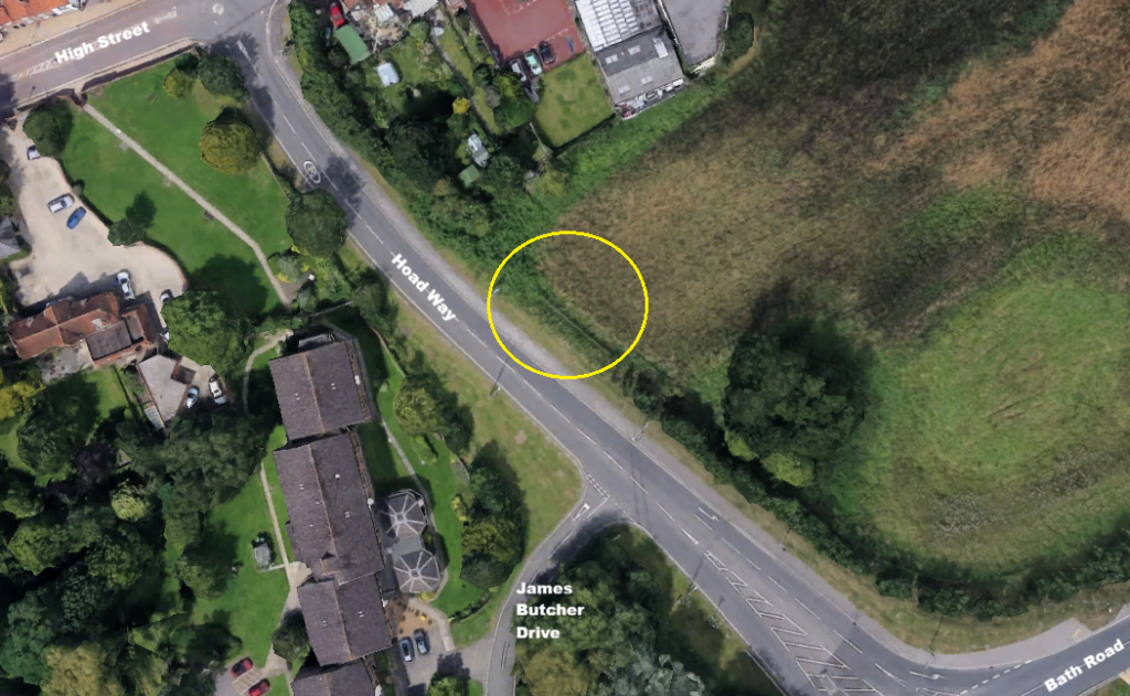 The location of the new vehicle access from Hoad Way (images courtesy of Google Earth and Google Maps)